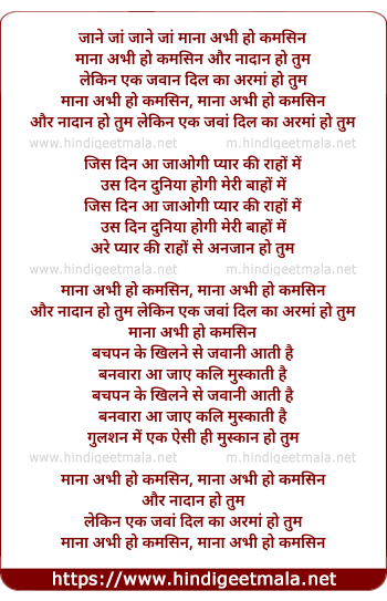 Lyrics of Mana Abhi Ho Kamsin Aur Nadan Ho Tum - माना अभी हो कमसिन और नादान हो तुम