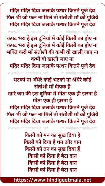 Lyrics of Mandir Mandir Diya Jala Ke - मंदिर मंदिर दिया जला के