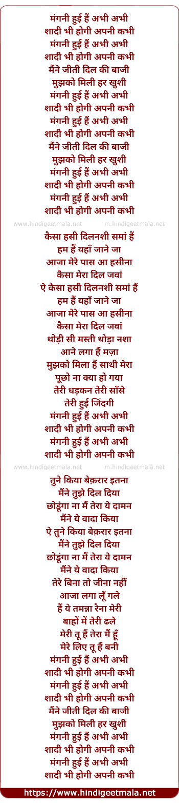 Lyrics of Mangni Hui Hai Abhi Abhi - मंगनी हुई हैं अभी अभी