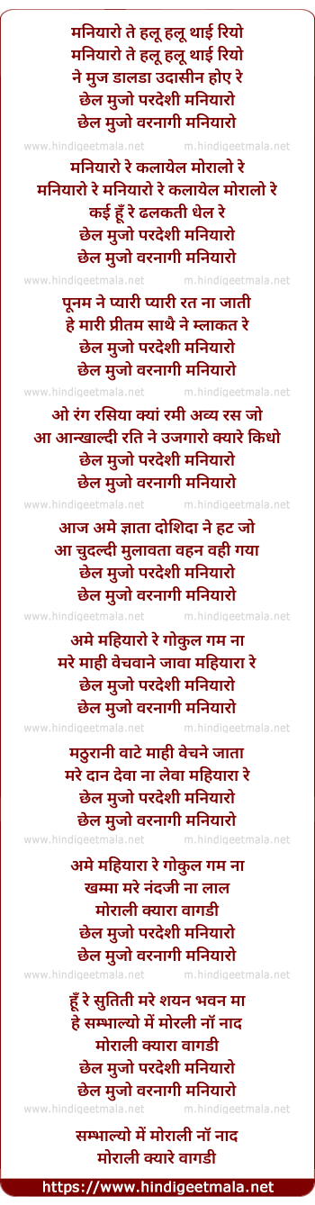 chhel mujo pardeshee maniyaro