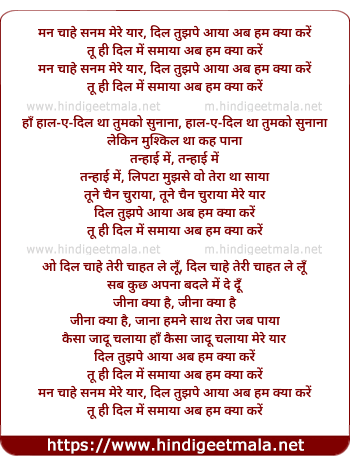 Lyrics of Mann Chahe Sanam Mere Yar - मन चाहे सनम मेरे यार