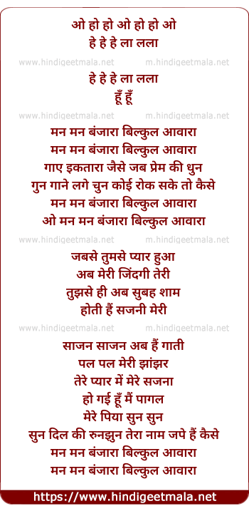 Lyrics of Mann Mann Banjara - मन मन बंजारा