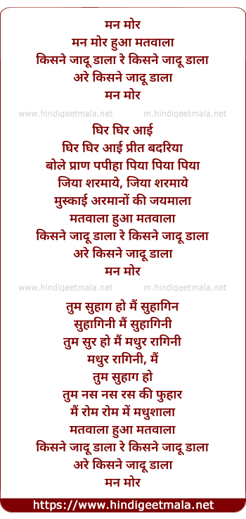 Lyrics of Mann Mor Huaa Matawaala - मन मोर हुआ मतवाला