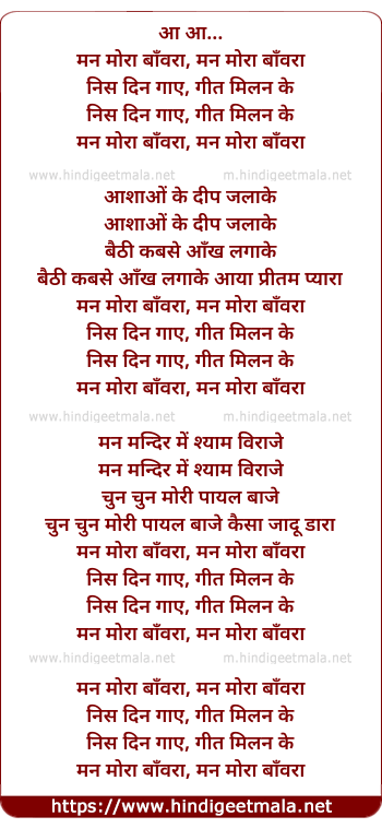Lyrics of Mann Mora Baanvra - मन मोरा बाँवरा