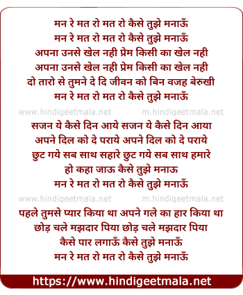 Lyrics of Mann Re Mat Ro Mat Ro - मन रे मत रो मत रो