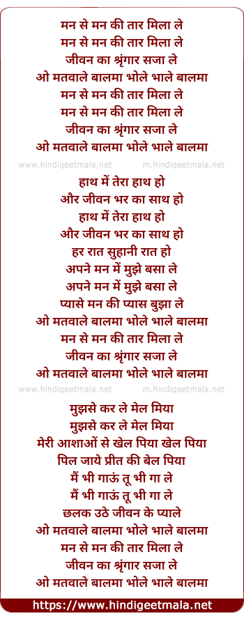 Lyrics of Mann Se Mann Ki Taar Mila Le - मन से मन की तार मिला ले
