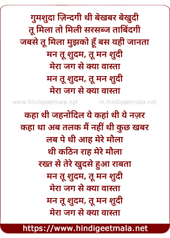 Lyrics of Man Tu Shudi - मन तू शुदी
