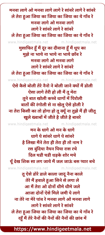 Poetic Translation - Lyrics of Manwa Laage - मनवा लागे