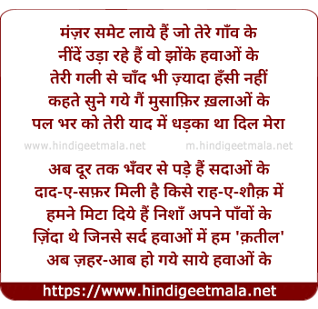 Lyrics of Manzar Samet Laaye Hain Jo Tere Gaanv Ke - मंज़र समेट लाये हैं जो तेरे गाँव के