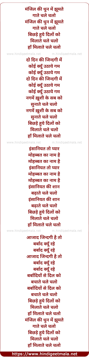 Lyrics of Manzil Ki Dhun Me Jhumate Gaate Chale Chalo - मंजिल की धुन में झूमते गाते चले चलो