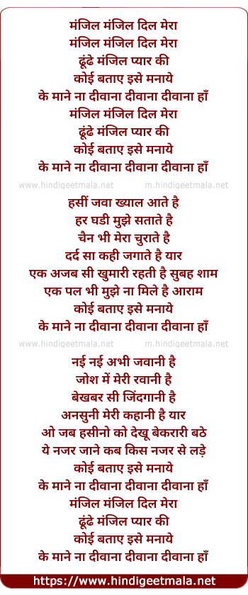 Lyrics of Manjil Manjil Dil Mera - मंजिल मंजिल दिल मेरा