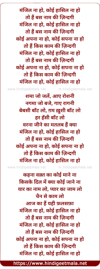 Lyrics of Manzil Na Koi (Male) - मंजिल ना हो, कोई हासिल ना हो