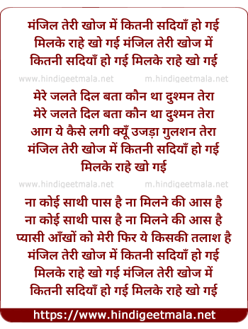 Lyrics of Manzil Teri Khoj Me Kitni Sadiya Ho Gayi - मंजिल तेरी खोज में कितनी सदियाँ हो गई