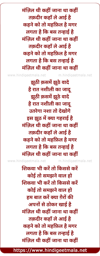 Lyrics of Manzil Thi Kahin Jaanaa Thaa Kahin - मंज़िल थी कहीं जाना था कहीं