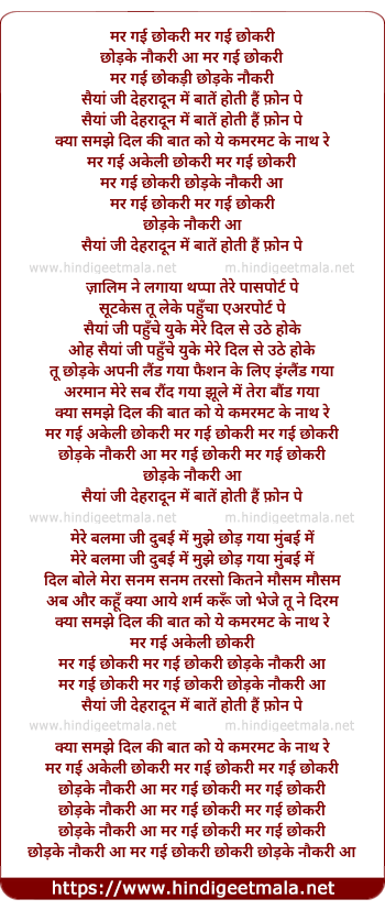 Lyrics of Mar Gayi Chhokri Chhod Ke Naukri Aa - मर गई छोकरी छोड़के नौकरी आ