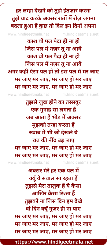 Lyrics of Mar Jaaye - मर जाये