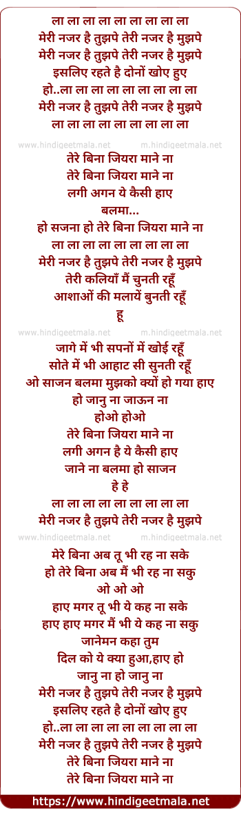 Lyrics of Mar Nazar Tadpave Jiya Jalave Tarsave - मार नजर तड़पावे जिया जलावे तरसावे