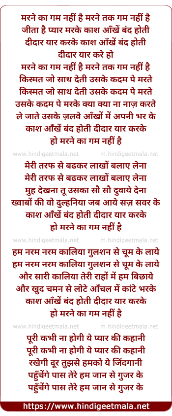 Lyrics of Marne Ka Gham Nahi Hai - मरने का गम नहीं है