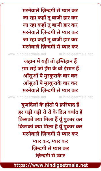 Lyrics of Marnewale Zindagi Se Pyar Kar - मरनेवाले ज़िन्दगी से प्यार कर