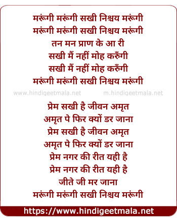 Lyrics of Marungi Marungi Sakhi Nishchay Marungi - मरूंगी मरूंगी सखी निश्चय मरूंगी