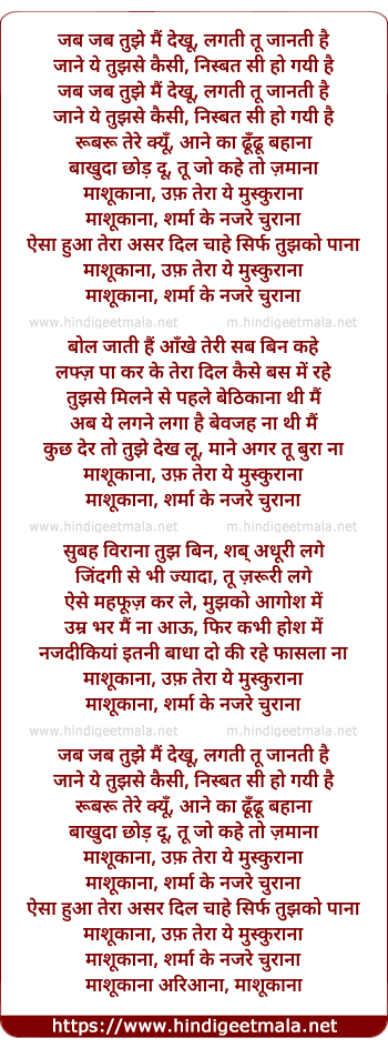 Lyrics of Mashookana - माशूकाना