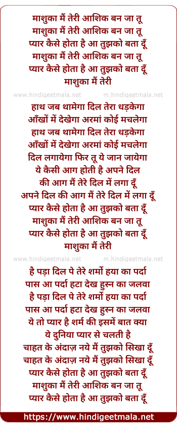 Lyrics of Mashooqa Mai Teri - माशुका मैं तेरी