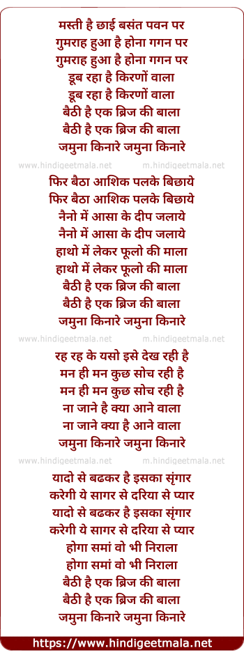 Lyrics of Mast Hai Chhayi Basant Pavan Par - मस्त है छाई बसंत पवन पर