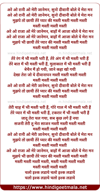 Lyrics of Masti Masti - मस्ती मस्ती