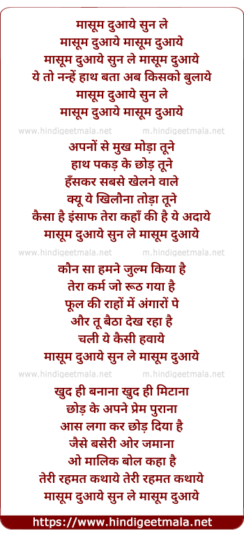Lyrics of Masum Duaye Sun Le - मासूम दुआये सुन ले