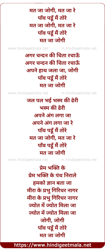 Lyrics of Mat Jaa Jogi - मत जा जोगी, मत जा रे