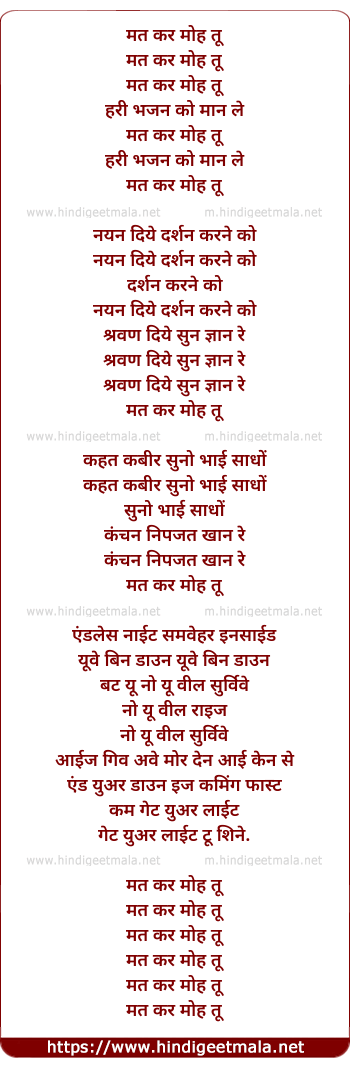 Lyrics of Mat Kar Moh Tu - मत कर मोह तू
