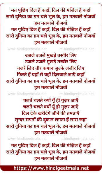 Lyrics of Mat Puchhiye Dil Hai Kaha - मत पूछिए दिल हैं कहाँ