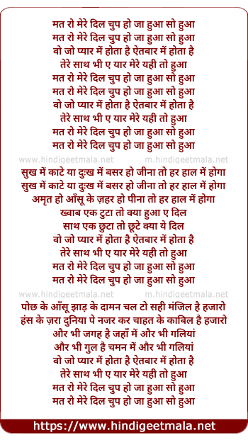 Lyrics of Mat Ro Mere Dil Chup Ho Ja Hua So Hua - मत रो मेरे दिल चुप हो जा हुआ सो हुआ