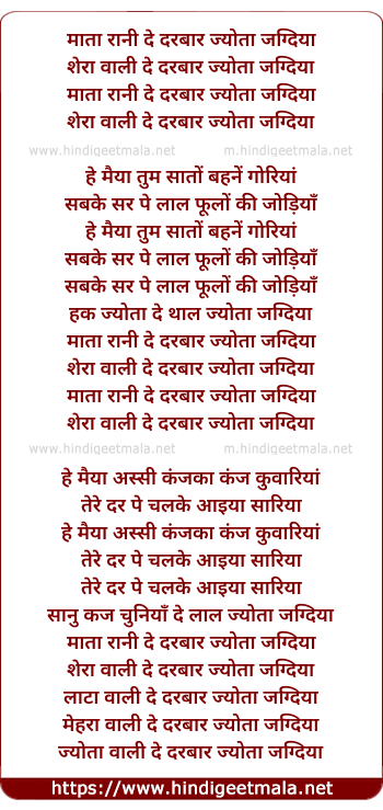 Lyrics of Mataa Rani De Darbar - माता रानी दे दरबार