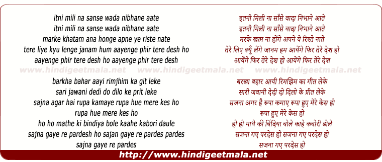 Comments for lyrics of song "Itni Mili Na Sanse Wada Nibhane Aate"