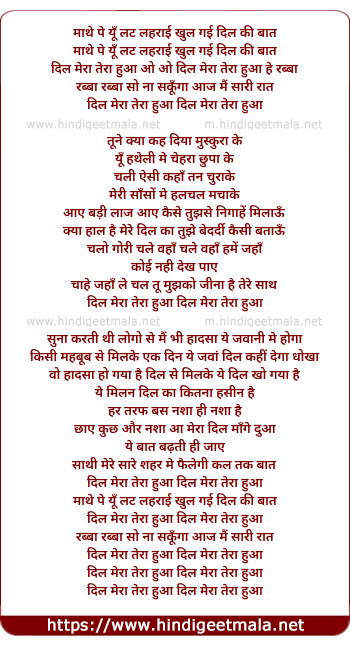 Lyrics of Mathe Pe Yu Lati Lehrayi - माथे पे यूँ लट लहराई