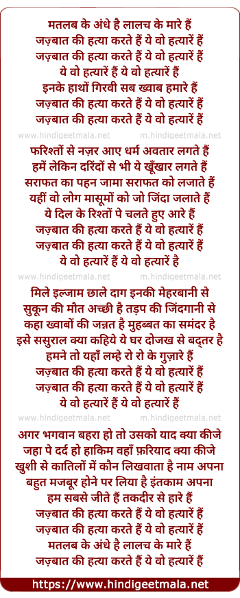Lyrics of Matlab Ke Andhe Hai - मतलब के अंधे है
