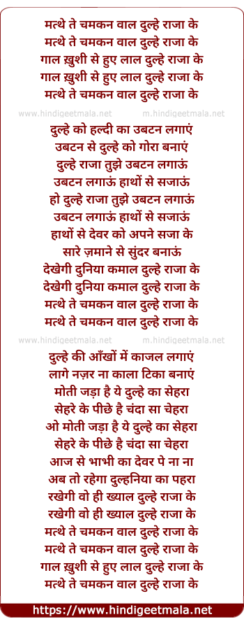 matthe te chamkan waal dulhe raja ke