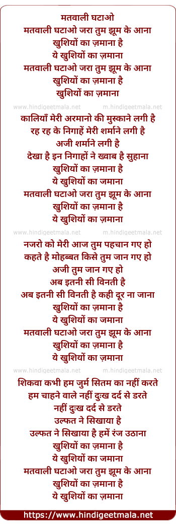 Lyrics of Matwali Ghatao Zara Tum Jhum Ke Aana - मतवाली घटाओ जरा तुम झूम के आना