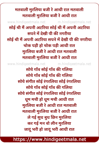 Lyrics of Matwali Muraliya Baji Re Aadhi Raat - मतवाली मुरलिया बजी रे आधी रात