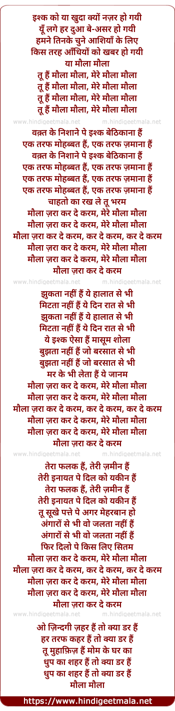 Lyrics of Maula Karde Karam - इश्क को या खुदा क्यों नज़र हो गयी