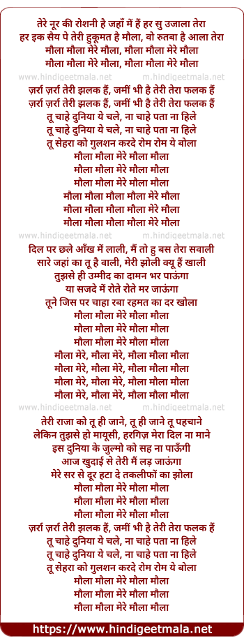 Lyrics of Maula Maula Mere Maula - मौला मौला मेरे मौला
