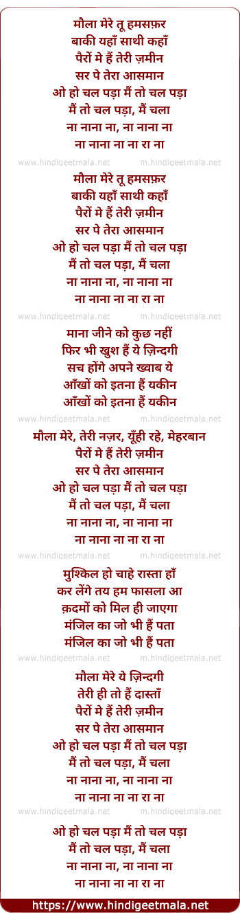 Lyrics of Maula Mere - मौला मेरे