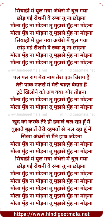 Lyrics of Maulaa Muh Na Modana - मौला मुँह ना मोड़ना