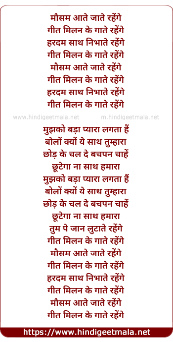 Lyrics of Mausam Aate Jate Rahenge (1) - मौसम आते जाते रहेंगे