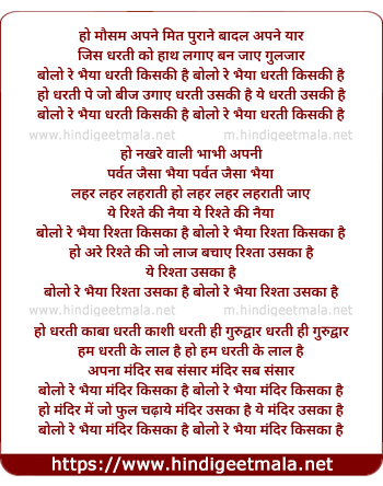bolo re bhaiya dharti kiski hai bolo re bhaiya dharti kiski hai