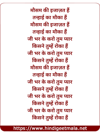 Lyrics of Mausam Ki Izazat Hai - मौसम की इजाज़त हैं