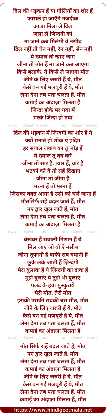 Lyrics of Maut - दिल की धड़कन हैं या गोलियों का शोर हैं