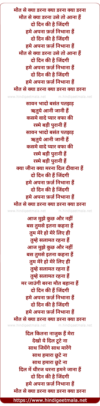 Lyrics of Maut Se Kya Darna Use To Aana Hai - मौत से क्या डरना उसे तो आना है