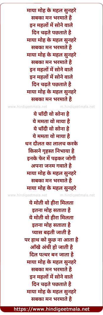 Lyrics of Maya Moh Ke Mahal Sunhare - माया मोह के महल सुनहरे